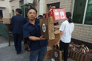 图2:员工高兴的领取到月饼和牛奶