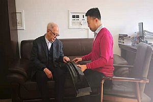 图:胡炜杰博士向陈院士请教工艺技术问题