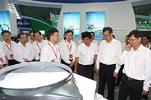 贵州省委常委、副省长慕德贵(前右三),广西区党委常委、常务副主席蓝天立(前右一),广东省副省长何忠友(前右二),肇庆市市长陈旭东(前右四)参观我司展位。